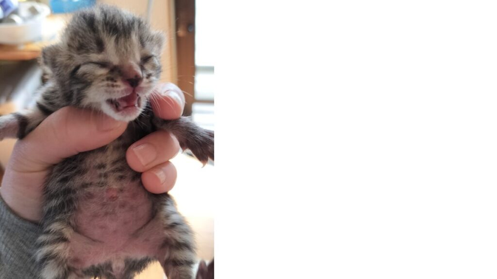 今回預かった子猫は、生後まだ3日ほどでまだへその緒が付いたとても小さな子です。